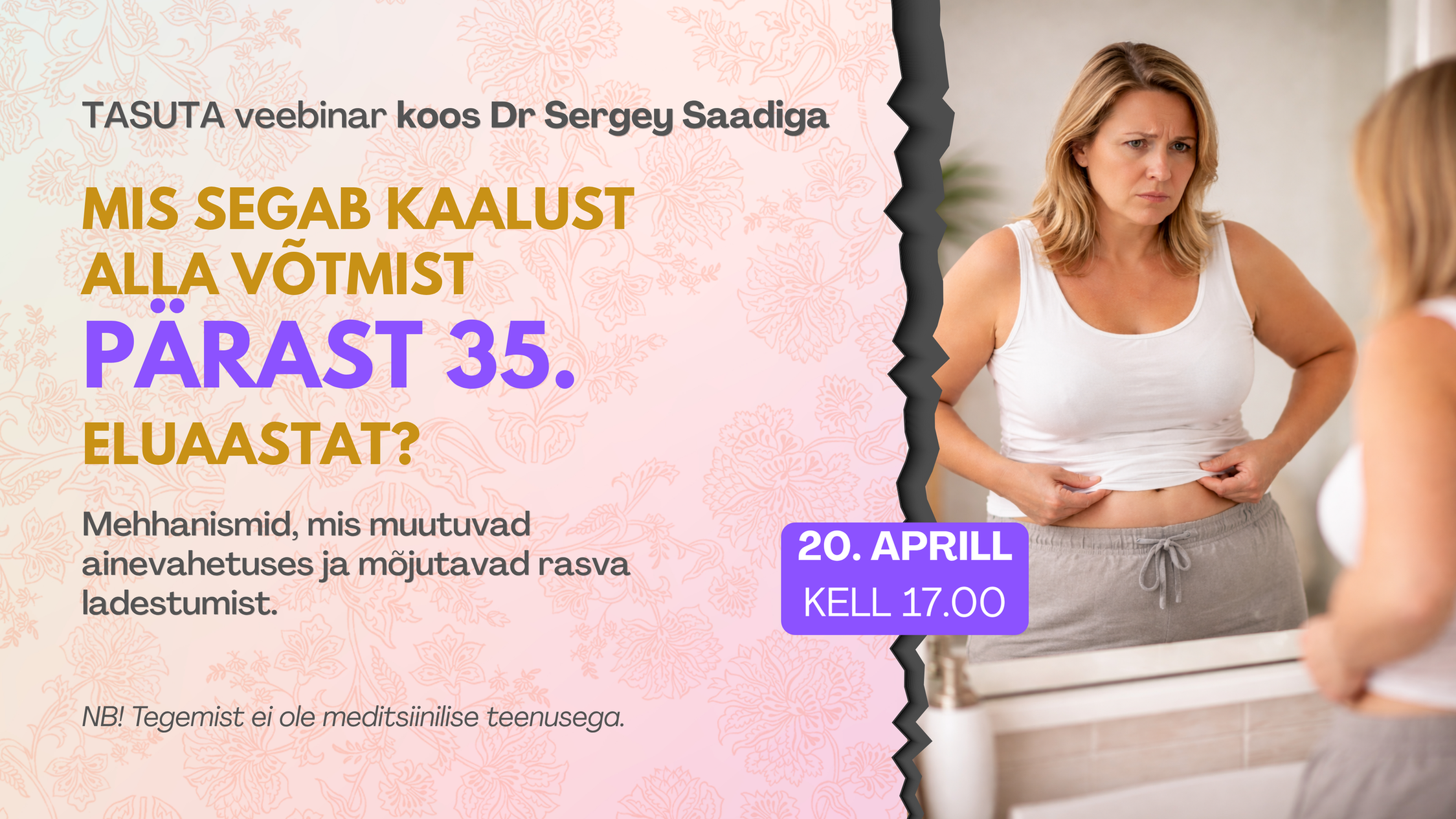 Kui soovid mĂ”ista, mis kehas tegelikult toimub, oled oodatud veebinarile âMis segab kaalust alla vĂ”tmist pĂ€rast 35. eluaastatâ